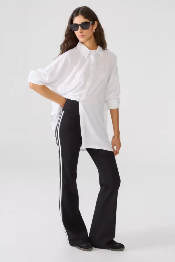 El Pantalón Manantial está confeccionado en Punto Roma Liviano, un tejido suave y flexible que acompaña cada movimiento. Su diseño incluye un delicado detalle de tira tejida en los laterales, aportando un toque distintivo y actual.