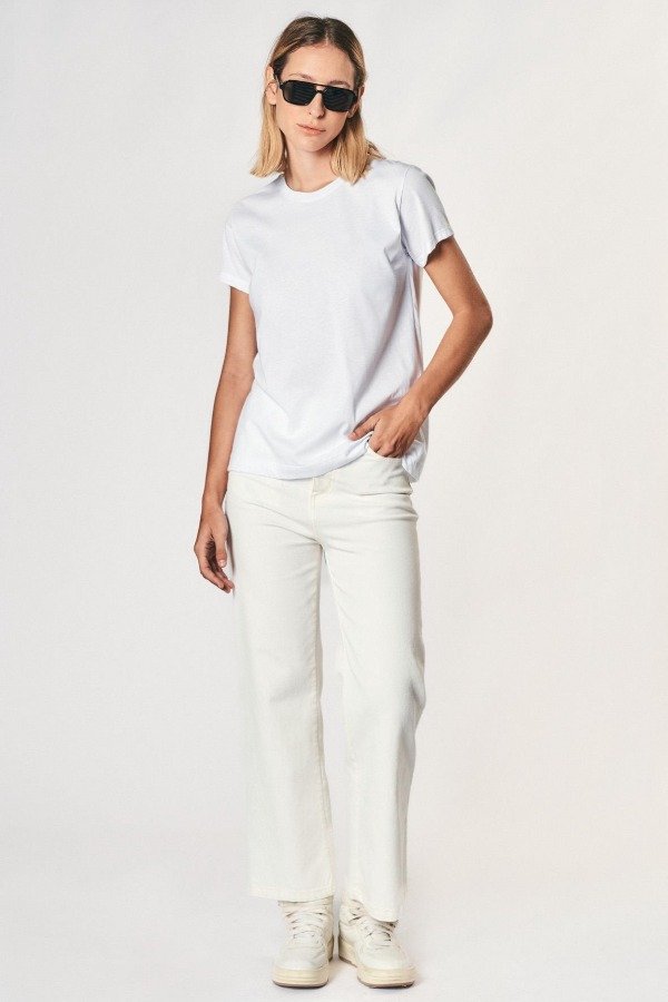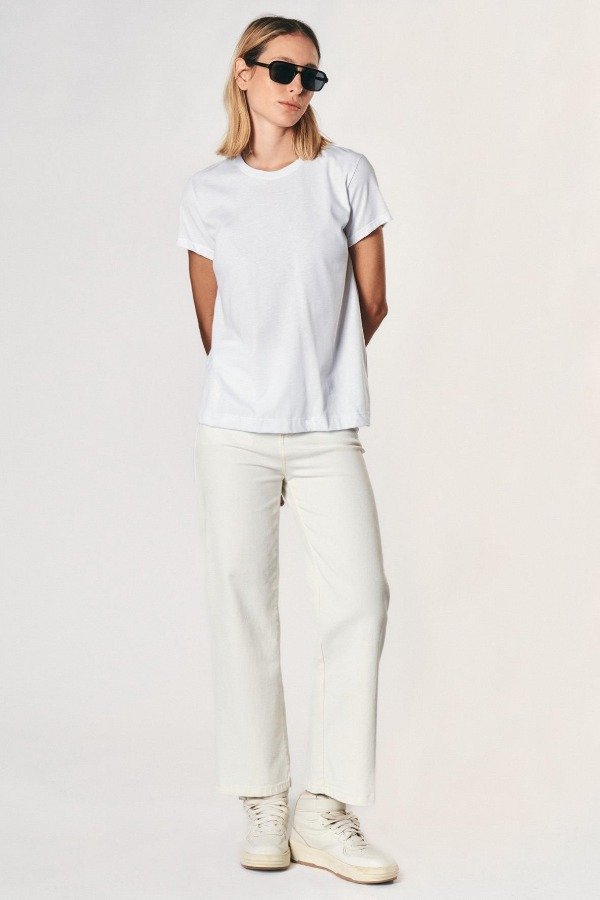 Remera básica confeccionada en tela de punto, con calce relajado, escote redondo y mangas cortas.