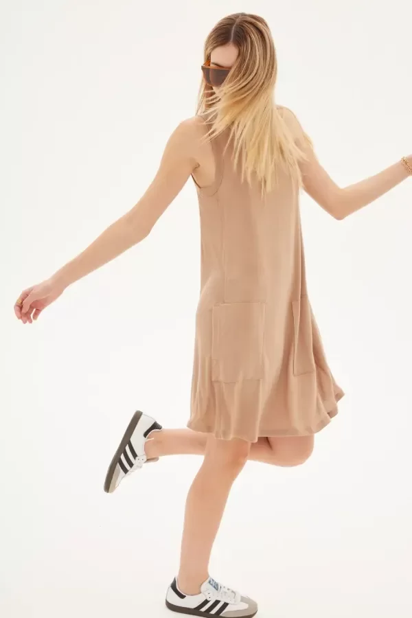 El Vestido Corto Aurora es una pieza elegante y fresca, ideal para los días cálidos. Confeccionado en jersey viscosa y morley, ofrece una caída ligera. Su diseño musculosa y corte corto proporcionan una comodidad excepcional.
